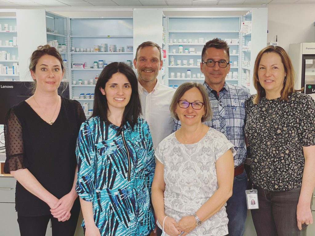 Christine, Rita, Evens, Maryse, Sylvain et Nathalie, pharmacien.ne.s à l'IRGLM