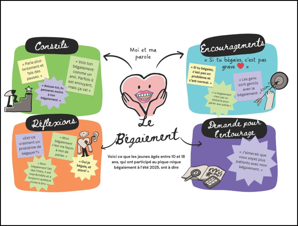 « Le bégaiement, c’est plus qu’un trouble de la parole : c’est souvent une expérience sociale, émotionnelle et identitaire. Ces moments d’échange permettent aux jeunes de sentir qu’on les comprend et qu’on les valorise. Cela les aide aussi à se sentir fier et fières de leur parcours. »