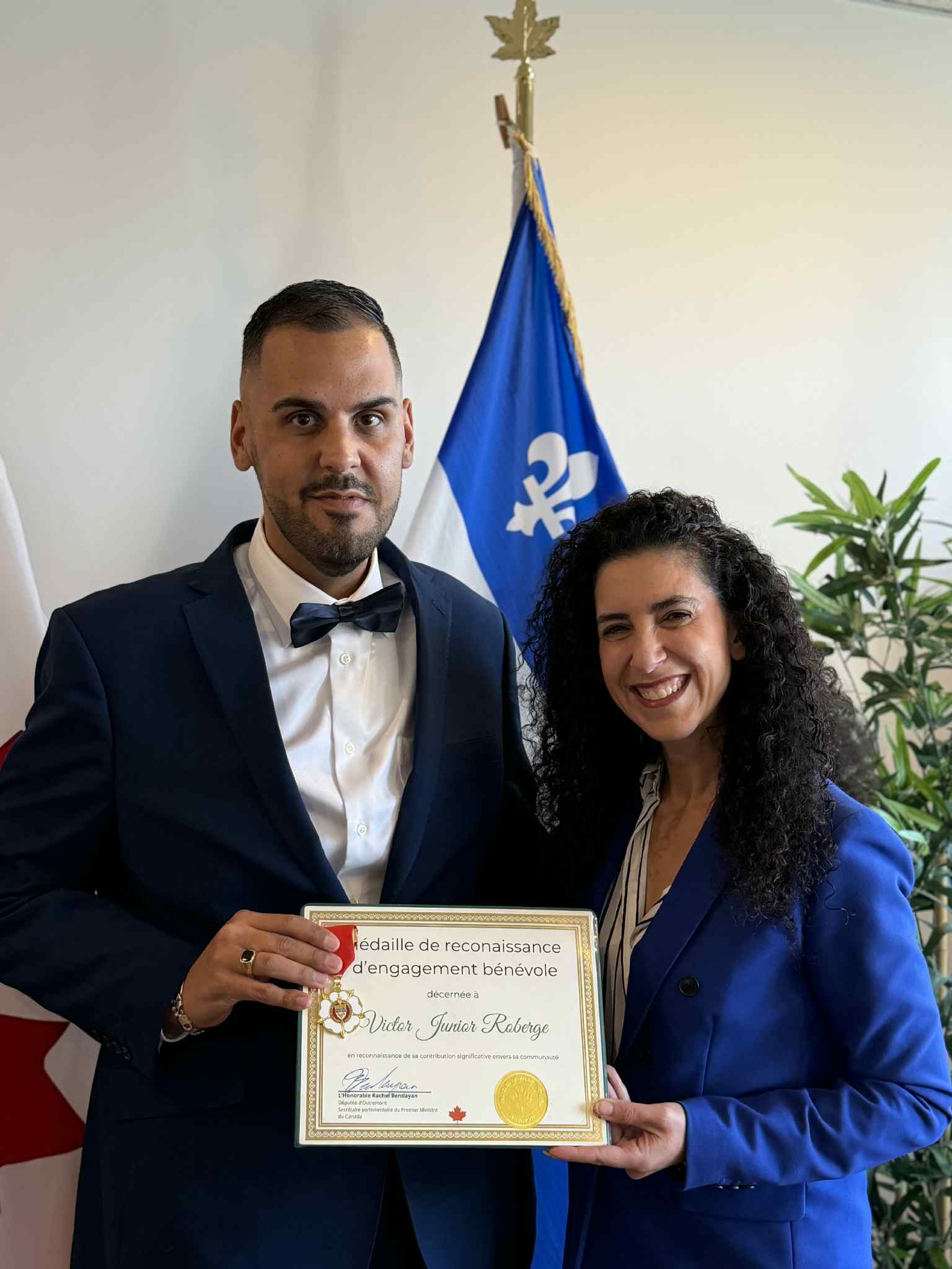 La Médaille de la Députée décernée à Victor Junior Roberge